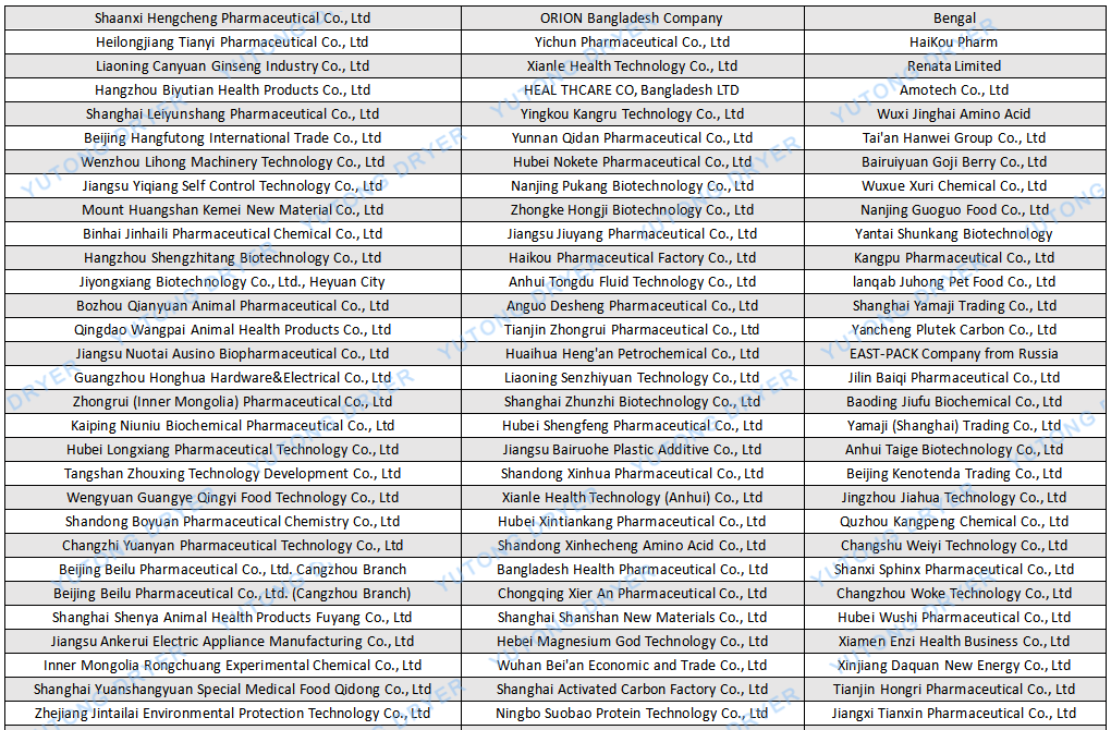Customer List for CT-C Hot Air Circulation Oven: