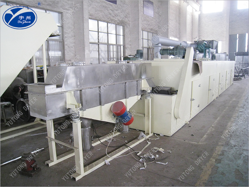 (1) Single-stage belt dryer: the material to be dried is evenly distributed to the conveyor belt from the feeding end through the feeding device. The conveyor belt is usually made of perforated stainless steel sheet, driven by a motor through a gearbox, which can be adjusted for speed. The body of the drying chassis is usually divided into several units to independently control operating parameters and optimize operation. There is an isolation section between the drying sections, in which no drying medium circulates.