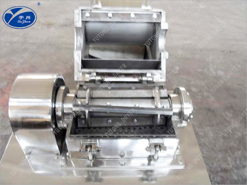 該機是采用立式粉碎機構,不受物料粘度、硬度、軟度等限制,對任何物料都能起到較好的粉碎作用。