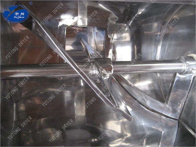 本機與物料接觸處均采用不銹鋼制造,槳葉與桶身間隙小,混合無死角,攪料軸兩端設有密封裝置,能防止物料外瀉。