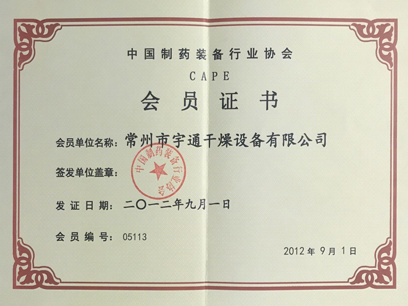 制藥行業會員證書