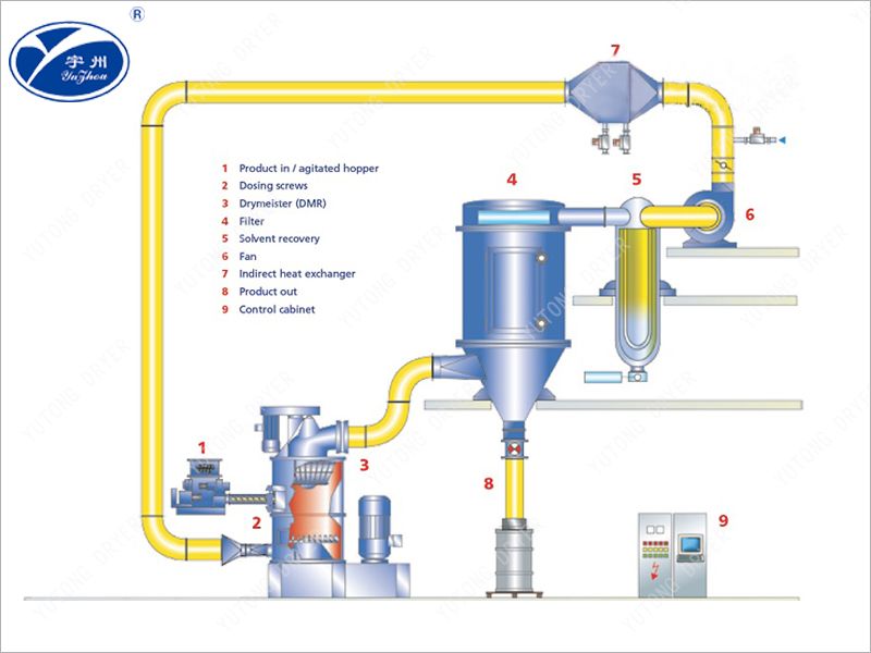 閉路循環(huán)閃蒸干燥機(jī)是江蘇宇通在借鑒國(guó)外先進(jìn)技術(shù)基礎(chǔ)上研發(fā)的一種新型密閉式干燥機(jī)。閉路干燥系統(tǒng)是在密閉的環(huán)境下工作,干燥介質(zhì)為惰性氣體提高了該設(shè)備的安全系數(shù),實(shí)現(xiàn)對(duì)制藥、生化、化工、生物等技術(shù)領(lǐng)域含有機(jī)溶媒、溶劑物料的干燥生產(chǎn)與溶媒、溶劑的回收,具備安全生產(chǎn)、高效、低耗節(jié)能減排的實(shí)用性。