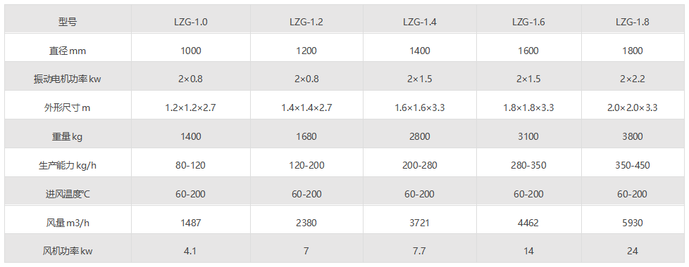 4、物料沿螺旋床自上而下作圓周運動的同時,自身也產生跳躍,從而增加了物料與熱風的接觸,增強了干燥效果。