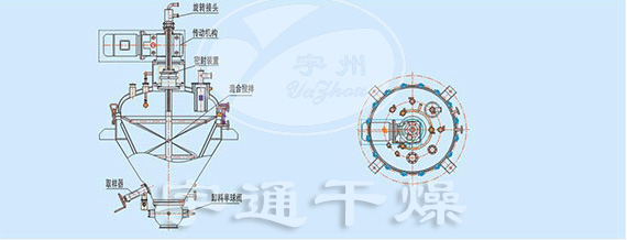 2、頂部驅(qū)動,設(shè)備在進料、干燥、混合、出料工藝過程中與外界空氣無接觸,無泄漏,無死角。