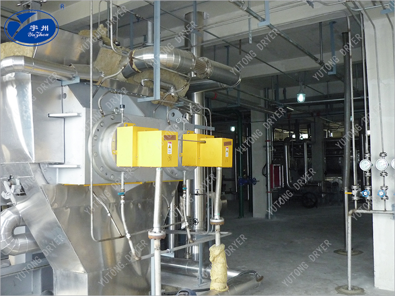 2、熱能利用率高,能耗低,裝料量可達筒體體積的70~80%,由于間接加熱,沒有大量攜帶空氣帶走熱量,干燥器外壁又設置保溫層,蒸發1kg水僅需1.2kg水蒸氣。