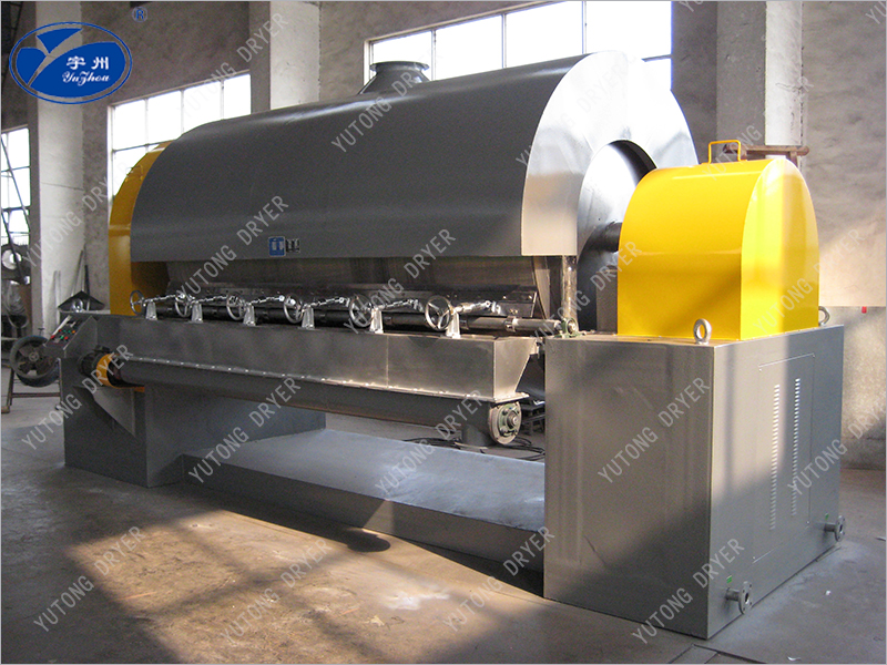 1、熱效率高。滾筒刮板干燥機傳熱機理屬熱傳導,傳熱方向在整個操作周期中保持一致,除蓋散熱和熱輻射損失外,其余熱量全都用于筒壁濕料膜的蒸發上,熱效率可達70%-80%。