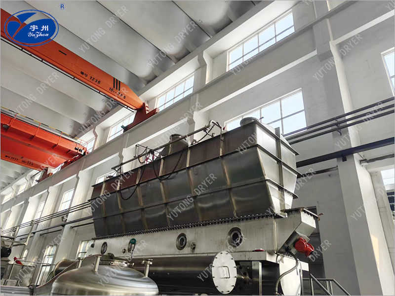 4、閉路循環沸騰干燥機帶有翻板機構,實現了在全密閉條件下進行出料,大大降低了工人的勞動強度與操作車間內完全無粉塵,車間環境好,自動化成度高。