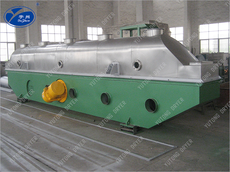Материал поступает в машину из входного отверстия, и под действием вибрационной мощности материал непрерывно выбрасывается вперед в горизонтальном направлении. Горячий воздух проходит через псевдоожиженный слой и обменивается теплом с влажным материалом. Влажный воздух удаляется циклонным сепаратором и выводится из выпускного отверстия, в то время как сухой материал выбрасывается из выпускного отверстия.
