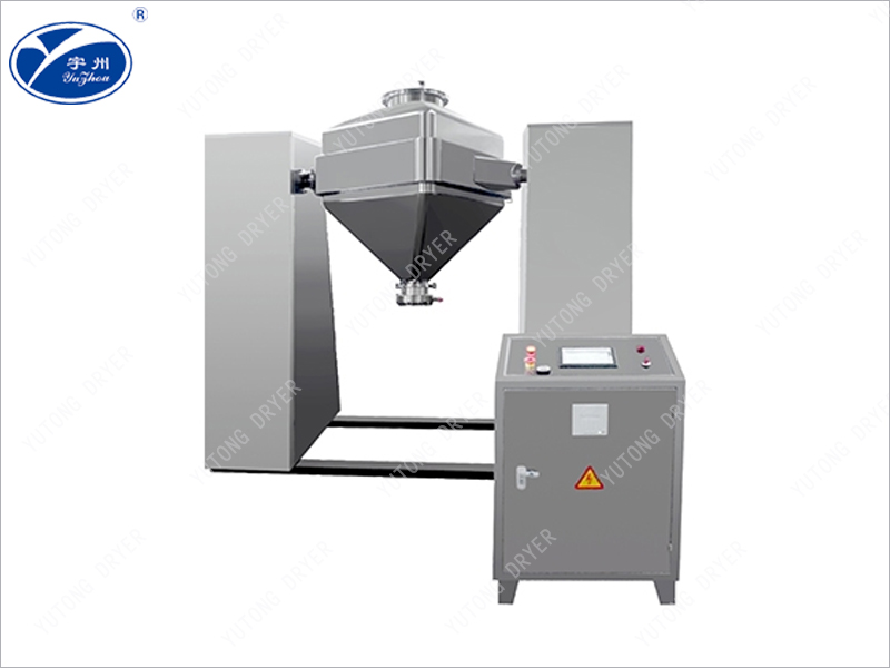 Материал помещается в квадратный конический замкнутый комбинированный барабан, где ось симметрии бункера находится под углом к оси вращающегося вала. Различные компоненты материала перемещаются в трехмерном пространстве в закрытых дверях материала, создавая сильный эффект опрокидывания и диффузии для достижения желаемого смешанного эффекта. Вся машина имеет новую конструкцию, компактную структуру, красивый внешний вид, однородность смешивания 99%, коэффициент объемной нагрузки 0,8.