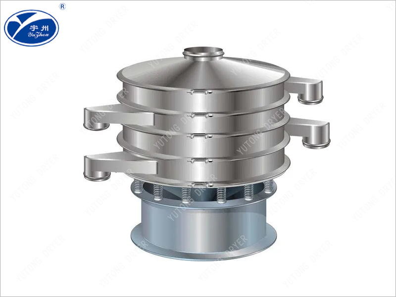 Машина состоит из бункера, вибрационной камеры, муфты и двигателя. Колебательная камера состоит из эксцентричного колеса, резиновой прокладки, шпинделя, подшипника и т. Д. Регулируемый эксцентричный тяжелый молот управляется двигателем и достигает центральной линии шпинделя, создавая центробежную силу в неуравновешенном состоянии, изменяя прочность материала, образуя орбитальный вихрь в сетке сита. Амплитуда регулятора веса может регулироваться в зависимости от различных материалов и сита.